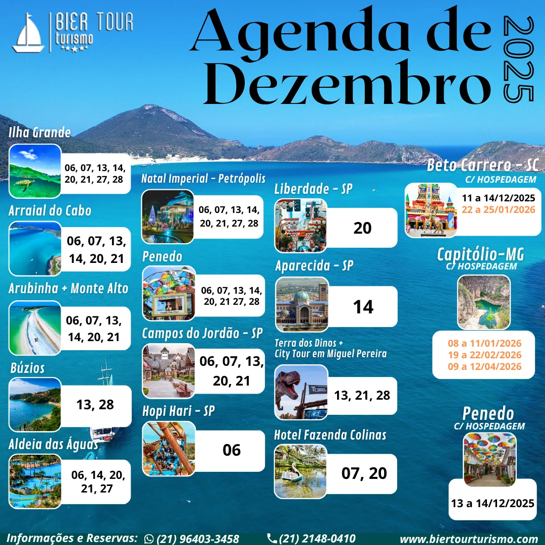Na Bier Tour Turismo, transformamos suas viagens em momentos inesquecíveis. Com foco em qualidade, segurança e conforto, oferecemos passeios pelos melhores destinos do Rio de Janeiro e regiões vizinhas, sempre pensando no que é mais importante: você.