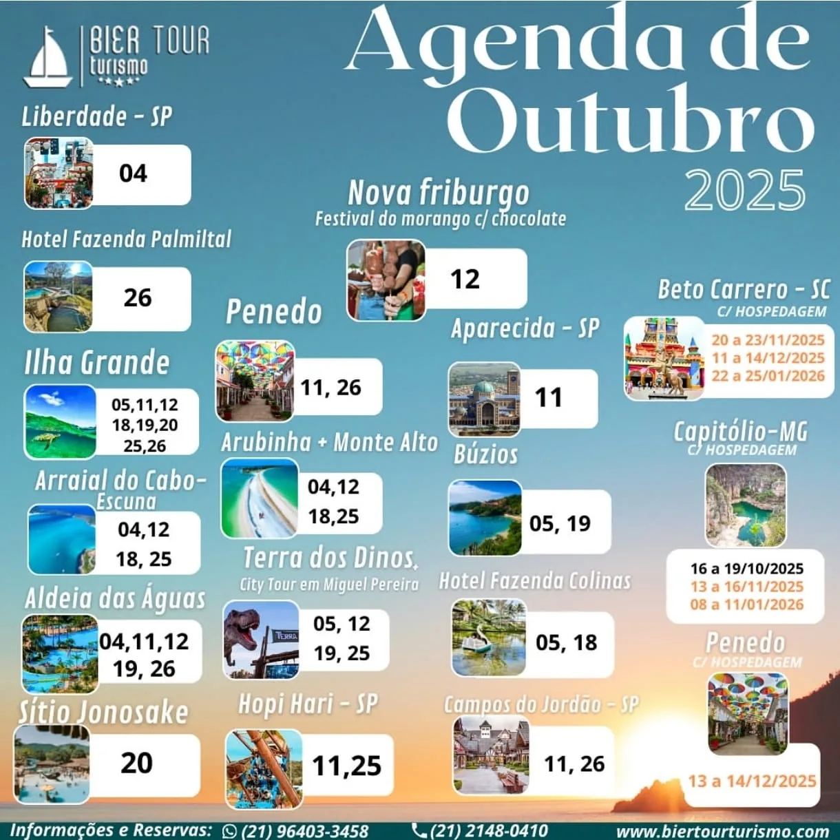 Na Bier Tour Turismo, transformamos suas viagens em momentos inesquecíveis. Com foco em qualidade, segurança e conforto, oferecemos passeios pelos melhores destinos do Rio de Janeiro e regiões vizinhas, sempre pensando no que é mais importante: você.